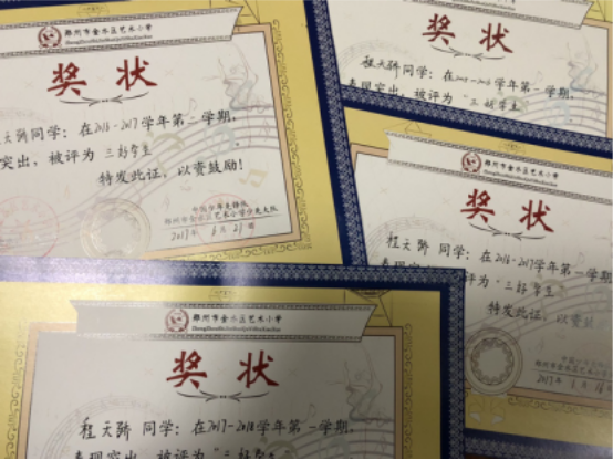 我爱思考,爱钻研。广泛的学习兴趣,让我在各学科的学习中都能得到乐趣;良好的学习习惯,让我取得了优异的学习成绩。我担任科学课代表,代表班级参加朗诵比赛;被音乐老师称为音乐小精灵;体育课上为大家做动作示范;书写比赛得了一等奖;“外研社杯”全国小学生英语大赛中,我冲进了决赛;每年获得的三好学生奖状是对我最大的肯定。